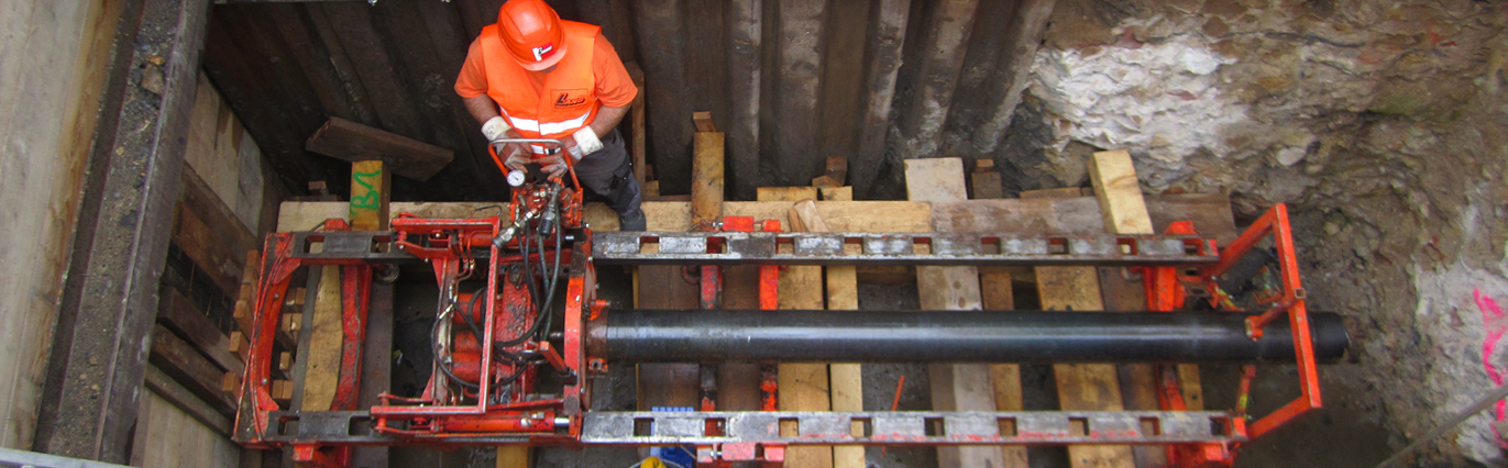 Wenn Autobahnen, Schienenverkehrswege oder Wasserläufe bei der Verlegung von Ver- und Entsorgungsleitungen gekreuzt werden, dann verbietet sich meist eine offene Bauweise. Andere Lösungen sind gefordert. Schon seit Jahrzehnten führt unser Unternehmen Horizontalbohrungen und Durchpressungen aus. Gleich ob ein Schutzrohr oder unmittelbar die Produktleitung eingezogen werden soll. Leistungsfähige Bohranlagen für Rohre bis DN 700 stehen uns zur Verfügung.